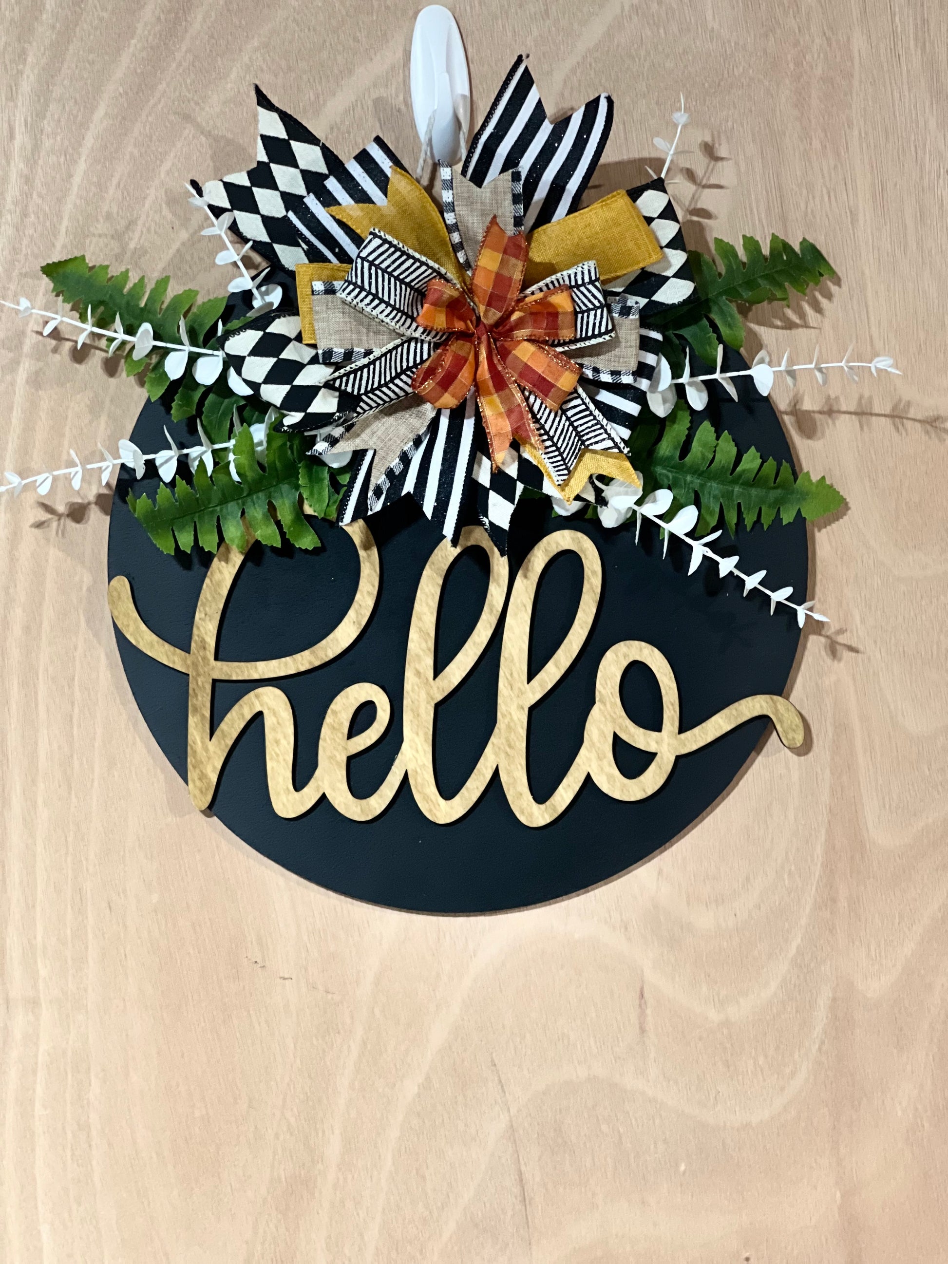 Welcome guests in style with this bold and beautiful handmade “Hello” Door Hanger!