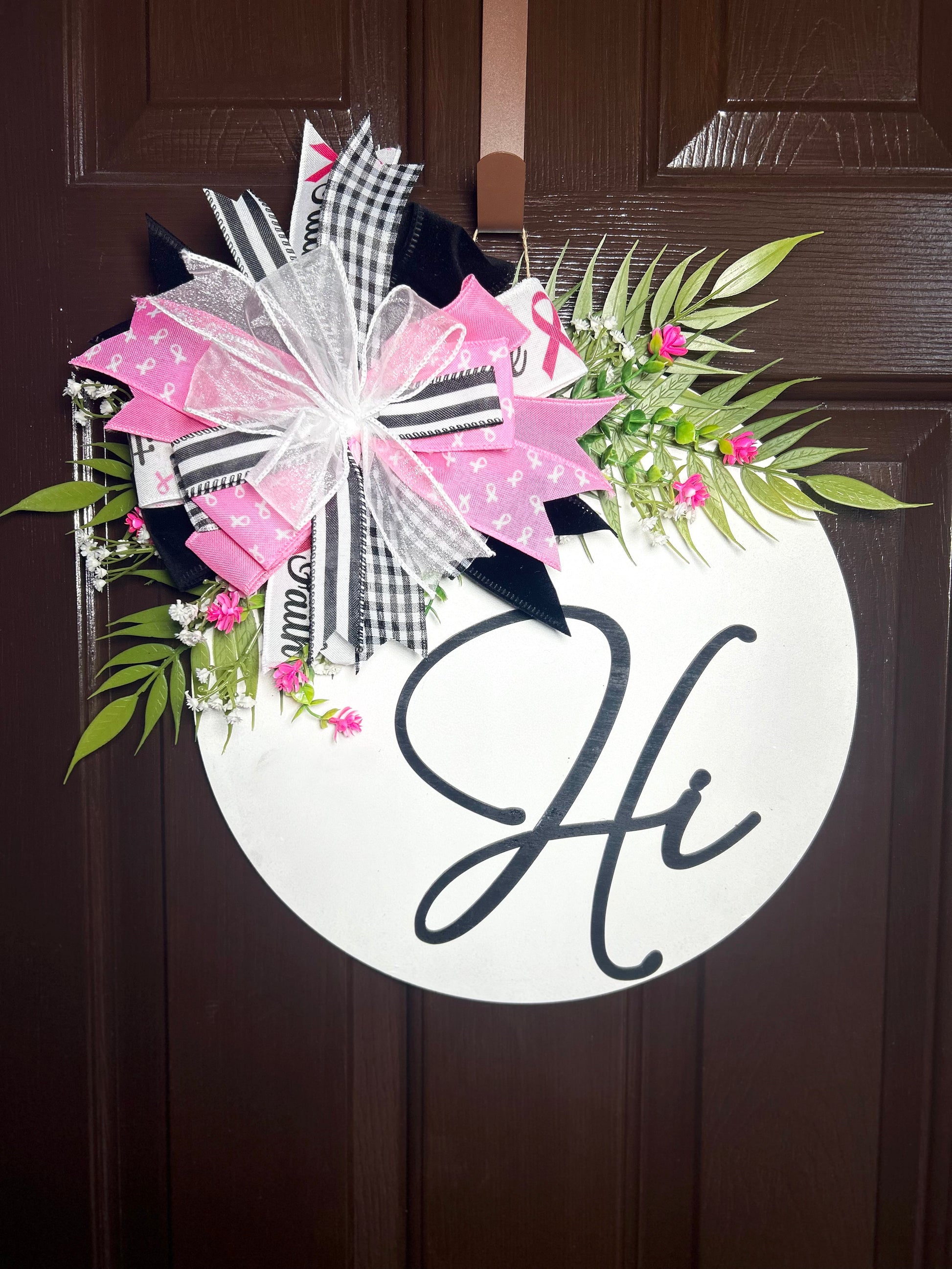 "Hi" Breast Cancer Awareness Black and White Door Hanger